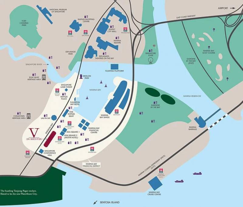 V>珊頓·雲尚位于新加坡濱海灣新商業金融區的中心位置,黃金第1區。珊頓·雲尚交通非常便利,連接主要的高速公路,距離地鐵站咫尺之遙。項目四周設施完善,教育資源豐富,附近有許多知名學校以及其他便利的生活設施。