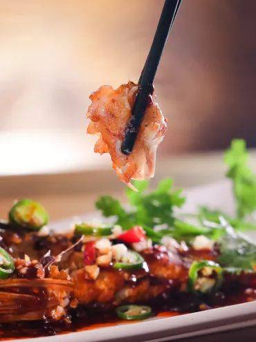 滋滋作響的秘制醬料澆于魚身