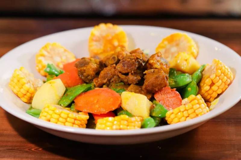 小排骨、油豆角、土豆塊、胡蘿蔔塊、玉米塊