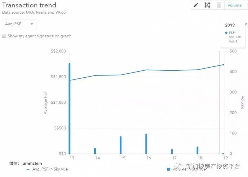 我們來看Bishan附近上一次(2013)的私宅項目Sky Vue目前的表現吧: