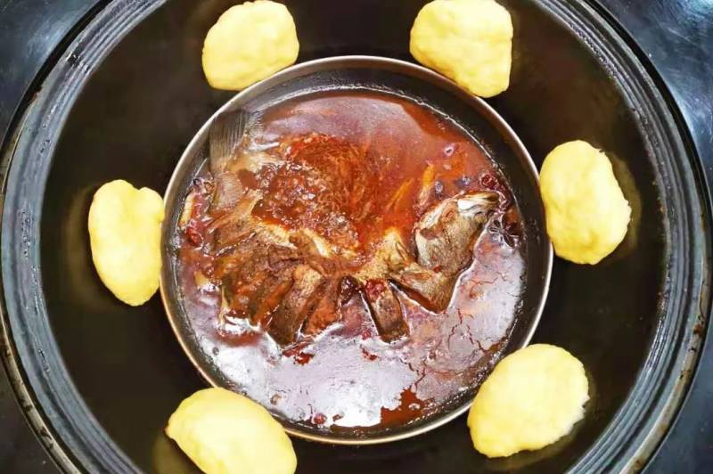 鍋中內容十分豐富,一整條魚被雞湯所淹沒