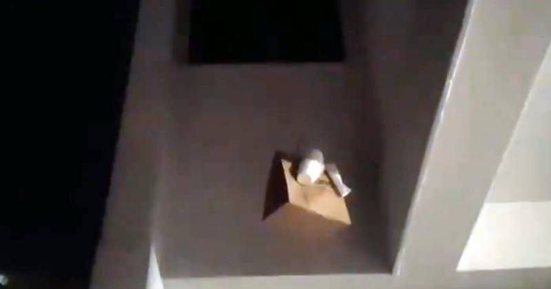 被“禁足”的顧客突發奇想,決定用繩子把食物吊上樓。(取自網絡)