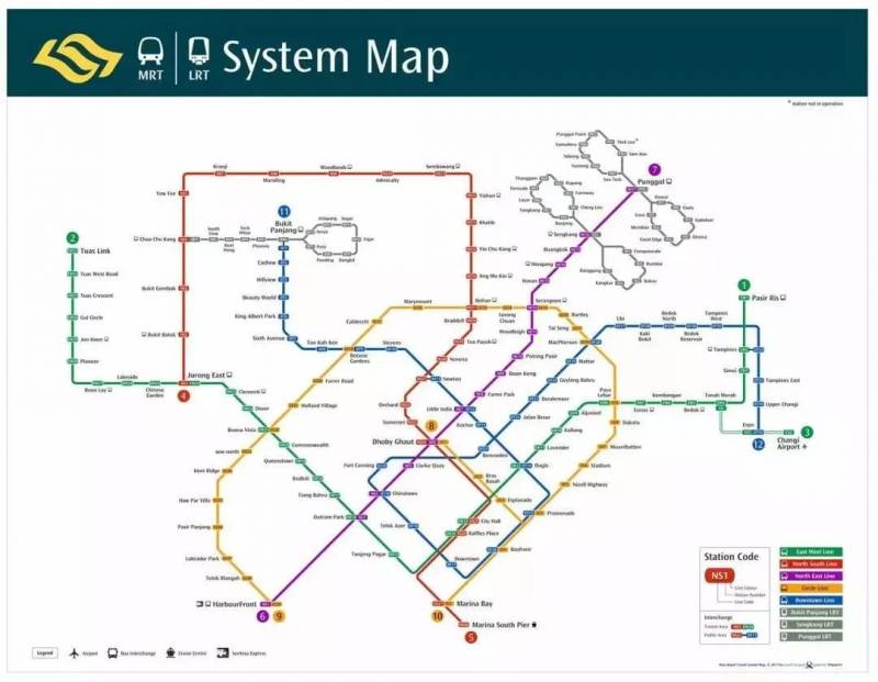 新加坡最方便快捷的交通方式是地鐵,整個地鐵系統幾乎覆蓋了新加坡,乘坐地鐵就可以讓你到達任意的旅遊景點以及城市核心區域。如今現有的五條線路,分別是: