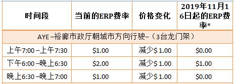 2019年12月學校假期的電子道路定價