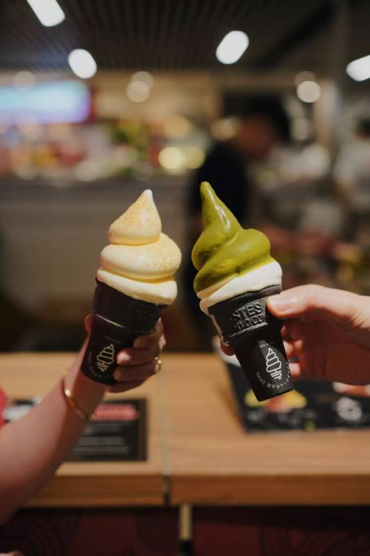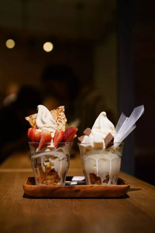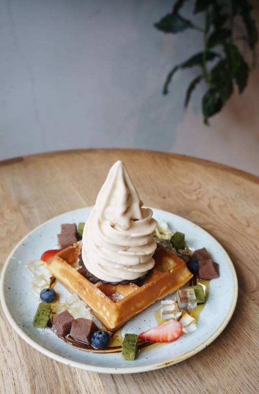 招牌是木炭芝士軟冰淇淋,各種蘸醬蘸粉的牛乳冰淇淋,還有新加坡限定——黑糖珍珠華夫碗搭配木炭牛乳冰淇淋。