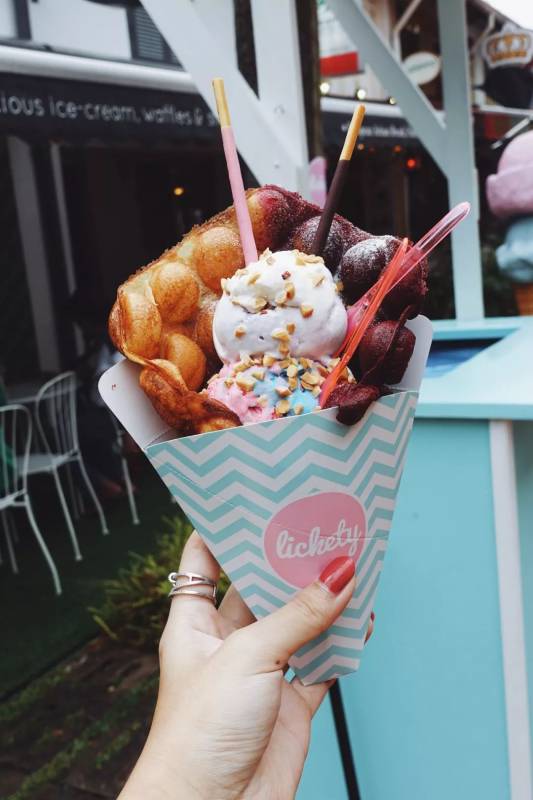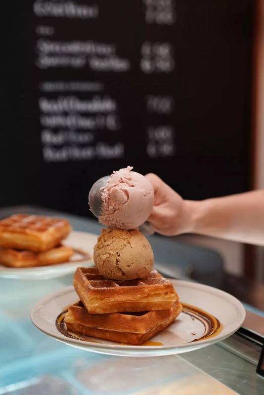 經典的四個口味永遠好吃——海鹽馬六甲椰糖、黑巧克力費列羅、烤開心果和伯爵茶薰衣草;可選各種各樣的配料;現烤華夫餅至今是吃過最愛的。
