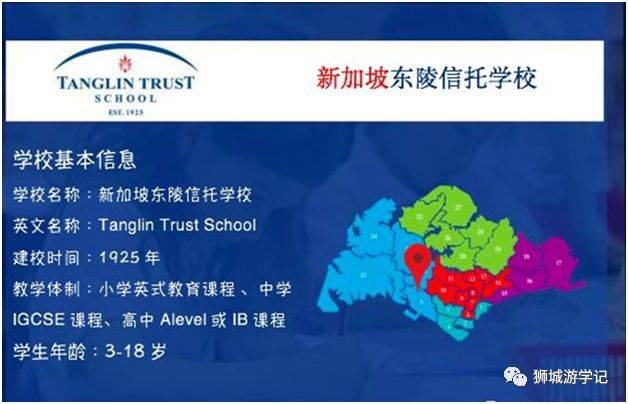 東陵信托學校 (Tanglin Trust School,簡稱TTS)成立于1925年,以英式教育爲主,英國國籍學生優先。在新加坡有90年曆史的老牌英國國際學校,提供國際課程。從幼兒園,小學部,中學部,到大學預科(Sixth Form)。