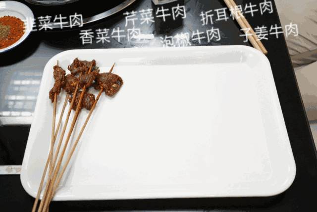 還有三種別出心裁的水果串串,白梨牛肉,鳳梨牛肉和哈密瓜牛肉,初次嘗試可能會覺得有些驚奇,但是吃多了就會發現,這種特有的甜味實際上是一種驚喜。