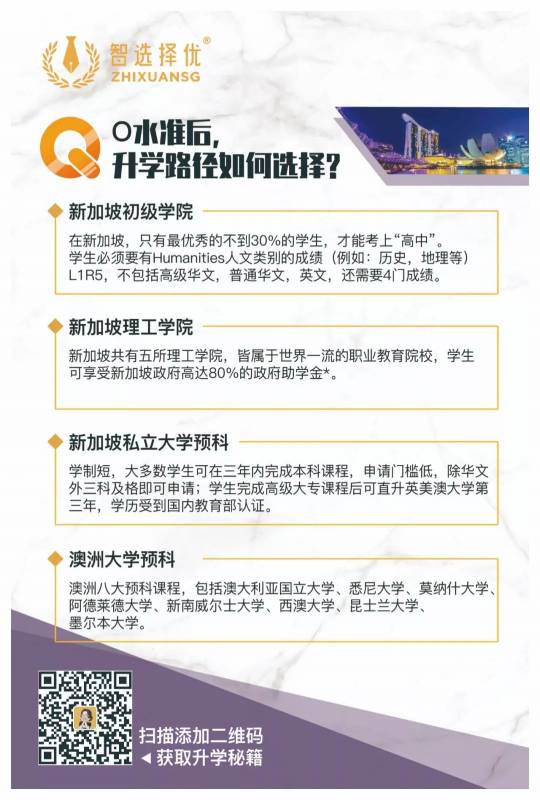 新加坡私立大學授課靈活,多與英國美國澳洲等知名大學合作辦學。如果O水准成績沒有那麽理想,可以先進入新加坡的私立院校學習本科課程,然後用本科成績申請新加坡公立大學的研究生也不失爲一個好的方法。