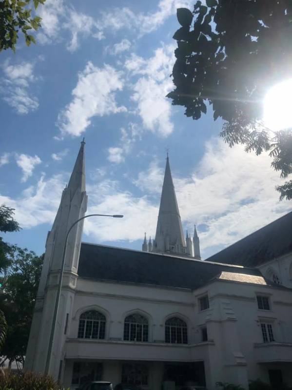 下午4點後出行是新加坡旅行的最完美時點,夕陽西下,走出酒店過個紅綠燈就是聖安德烈教堂,恰逢新加坡兒童節,廣場上正在舉辦孩子們的類似兒童斯巴達大賽,教堂裏又正在舉行一場婚禮,新人正站在門口,准備在婚禮進行曲中緩緩沿著教堂長長的通道走進婚姻的聖殿。