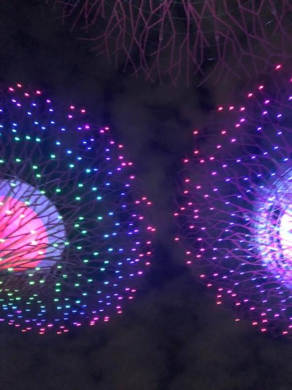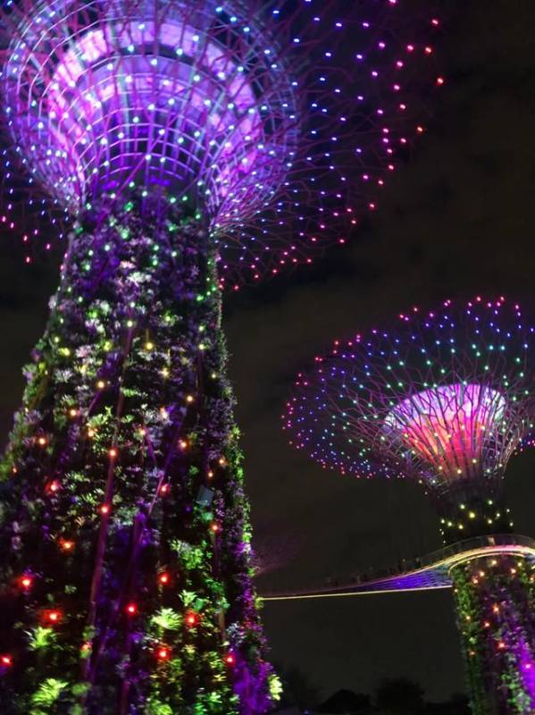 晚上的海濱灣公園裏,有燈光秀,一共兩場,晚上七點四十五,和八點四十五兩場,可以躺在海濱灣公園那些巨型的花樹下的地上,擡頭仰望斑斓的燈光秀,那一刻,晚風徐徐的夜裏,滿樹的燈火猶如漫天繁星,在快節奏的大都市裏,確實猶如走進了秘密花園。