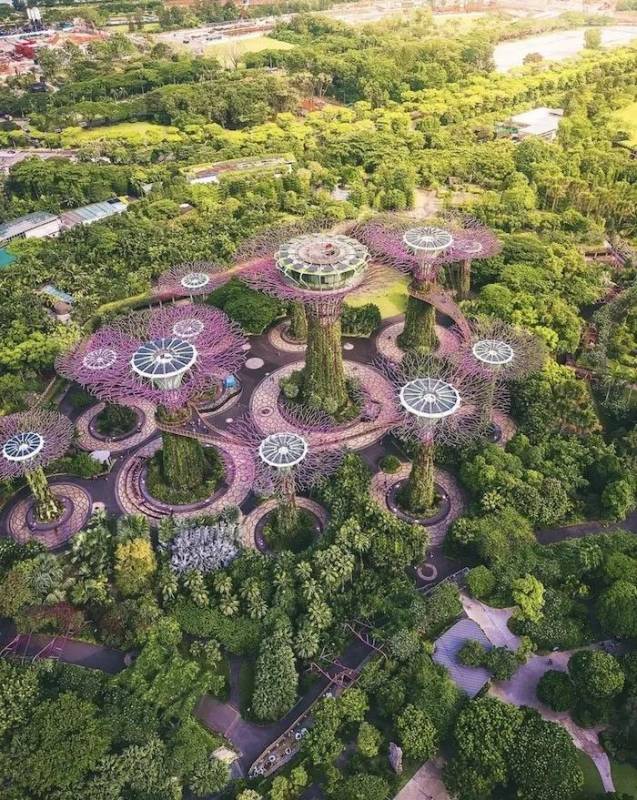 濱海灣花園(Gardens By The Bay)的花園有超級大樹和郁郁蔥蔥的綠色植物,模仿了幾個世紀後的熱帶雨林。