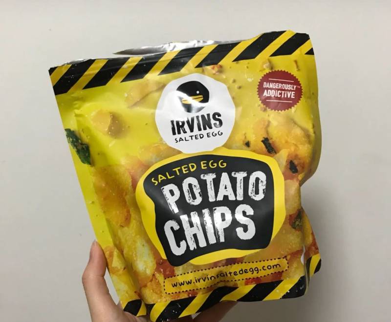 這個近兩年在新加坡很火的鹹蛋黃零食其實是很傳統的零食小吃,尤其是春節時在家裏都會備上一份,IRVINS的鹹蛋黃魚皮比較正宗哦!主要有三款,鹹蛋黃魚皮、鹹蛋黃木薯片、鹹蛋黃黃薯片,其中小編最喜歡的就是魚皮呢~ 魚皮吃起來非常酥脆,而且每片魚皮都非常大塊,裹著滿滿的鹹蛋黃味,簡直激爆味蕾!