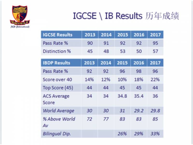 英華國際學校每年的考試成績有目共睹。根據2018屆入讀的26名中國學生的本科升學統計:9人入讀亞洲前3的新加坡國立大學。滿分45分的IB考試,其中一位學生的分數高達44分!4名學生43分!對比29.8的IB世界平均分,英華國際學校的實力可見一斑。