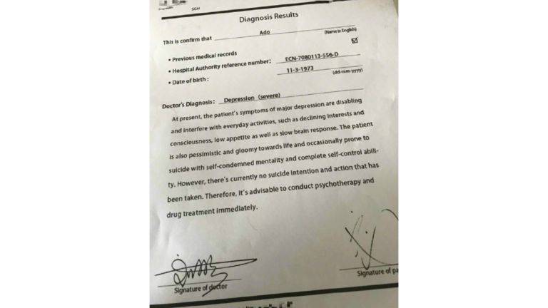 照片來自新浪娛樂,網上流傳的疑似阿杜的抑郁症診斷書