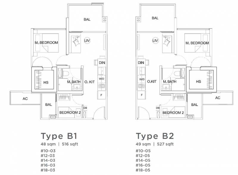 二臥室戶型方方正正,廚房與餐廳合二爲一,節省空間,客廳相對獨立。主人房可放置King Size的雙人床,客房和主人房均配備內置衣櫃。客廳和普通房還配備陽台。有些二臥室單元只配備一個衛生間,有些有2個衛生間。二臥室適合夫婦享受二人世界,或有一個孩子的夫婦,以及專業人士和學生。除了自住,也適合出租給高端專業人士。