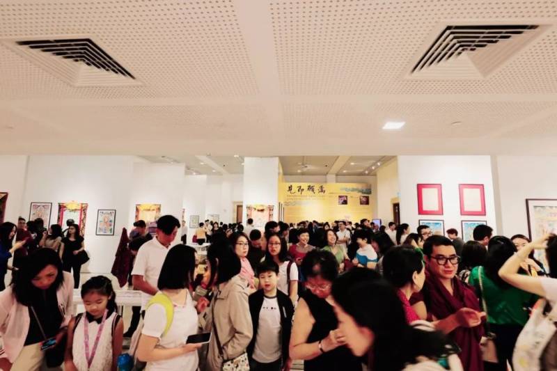 中國文化中心主任肖江華、中國工藝美術大師更登達吉、中國台灣仁真千寶仁波切、西藏林拉熱畫師、不丹kinzang chojay畫師、印度的OT仁波切、美國Helena女士、Philosojoy創辦人劉奧娜女士,以及新加坡善濟醫社卓順發主席、戲曲學院林方華主席、大慈善家黃馬家蘭、華樂團董事局副主席吳學光先生、獅城書法篆刻會陳美娟副會長等250余名嘉賓出席開幕式並參觀展覽。開幕式上,工藝美術大師更登達吉向嘉賓們介紹了青海唐卡的曆史、現狀、傳承和發展。