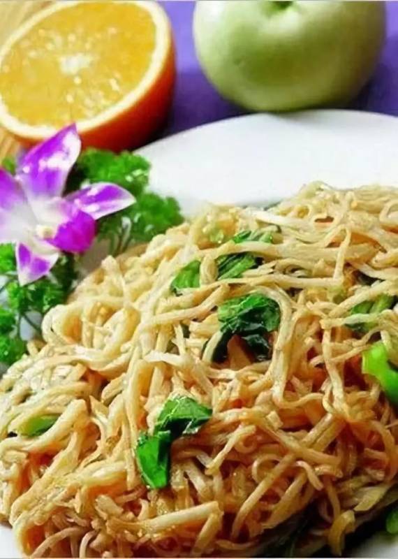 這家蝦面對面的一個檔位則是全家經營。老先生在裏面幫忙,老太太坐在外面守著一堆打包盒,熟芝麻,豬腸粉醬汁,染成棕紅色的頭發早上六七點就吹得高聳入雲,一絲不亂,臉上妝容精致,皮膚白皙,微微皺著眉總是若有所思。站在檔口的中年女人總是雙腳並攏,身體直立,像學生跟老師說話一樣恭謹地問排隊的人要辣不要辣,打包還是這裏吃。後來裏面幫忙的人換成了一個年輕男子,圓臉,微胖,不笑的時候也像在笑著,眼睛看著下方白紙一樣的腸粉,新鮮制成的豬腸粉溫潤黏厚。一個中年男子是主力,負責將稀米漿倒入模盤,像腸粉一樣瓷白的臉在蒸汽缭繞中不苟言笑,偶爾擡頭嚴肅地看看四周,很快又低下頭去,臉旁邊貼著幾張和周潤發在檔口前的合影,兩個人都笑容可掬。