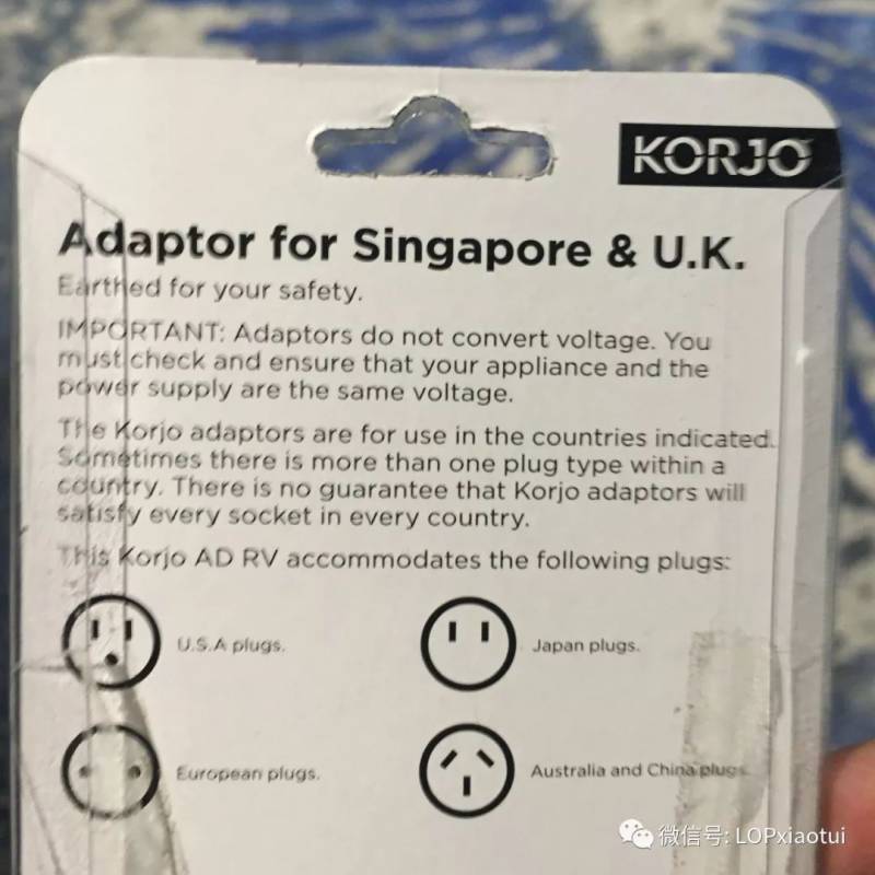 該轉換頭支持美國、日本、歐洲、澳大利亞/中國->Singapore/UK。