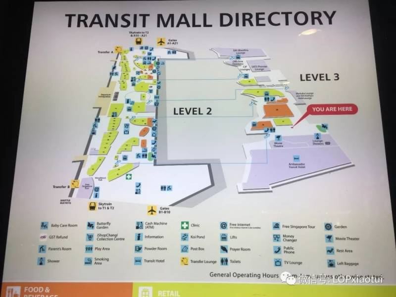 位置:T3航站樓的3樓(Level 3)的蝴蝶花園(Butterfly Garden)、Movie Theatre旁邊。