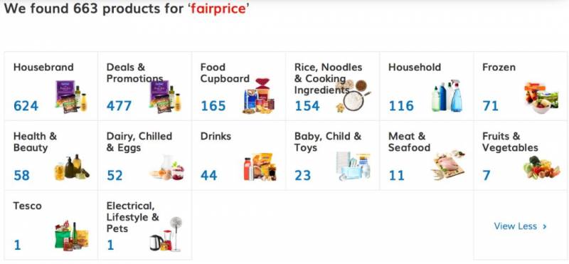 在平價超市官網上搜“Fairprice”,一下就出來600多産品,線下超市會有更多