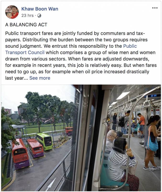 基礎建設統籌部長兼交通部長許文遠在自己的Facebook帖文中寫到,公交車資是由乘客和納稅人共同承擔,如何分配這兩者的負擔需要明智的判斷。