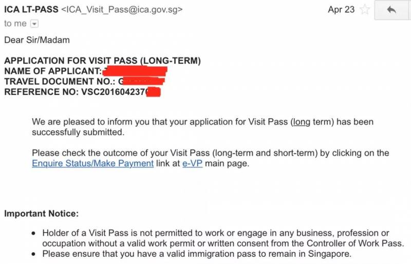 收到信的第二天我們趕緊按照信件上的要求帶著我媽媽去體檢,和去銀行做2000新元的保證金的手續,我老公也趕緊在網上預約去ICA取卡的日期……網上的預約最早也要到12月4日,那時候我爸媽的旅遊簽證就過期了,所以我們只能不斷去網上刷,終于約到了11月。