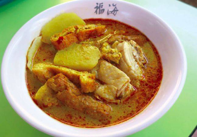 福海以其配料豐富的面條而聞名,主打咖喱雞肉面。 配料之豐富,大塊的水煮雞,雞腿,牛肝菌,豆芽,魚糕和小塊土豆,每一粒都浸入了咖喱味。