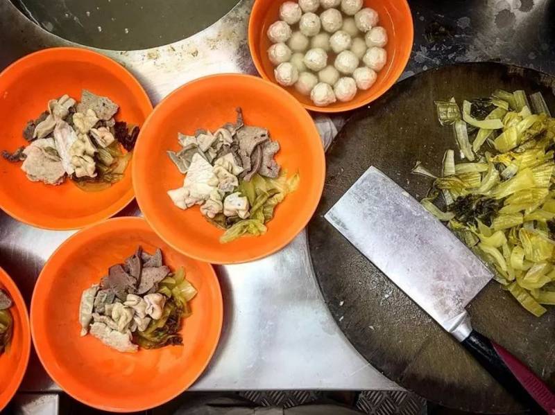 店家專門提供潮州風味的清湯,每天由豬骨頭,內髒和腌制的芥末腌菜新鮮制成。這的豬什湯,特制的湯底,和切成薄片的豬內髒,豬肝,豬肚,豬腸,豬肉丸,瘦肉。