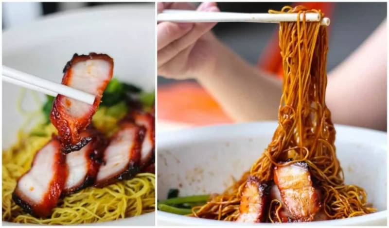 這裏的面條也不是普通的雞蛋面,都是特別從香港進口的。或僅用雞蛋,面粉和少量堿性水制成的竹竿面,薄而且會有彈性輕盈的質感,再配上幾片香酥豬油,點睛之筆啊,味道非常鮮美。