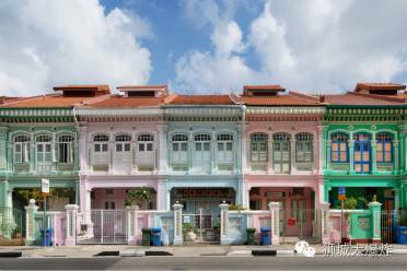 作爲新加坡土生華人曆史街區的代表,加東區(Katong)一點也不“顯老”。天藍、果綠、嫩黃、洋紅的雙層店屋整齊地站在街邊,每幢小樓都精心地裝扮以中式的琉璃瓦、馬來式的小矮門和古希臘科林斯式的壁柱,歐亞建築元素奇妙地融于一體,典雅優美,仿佛走進一座明麗鮮妍的童話鎮。