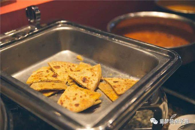 恰巴提是印度最普遍的全麥面餅之一,嚼起來十分有勁,也有點類似蔥油餅。采用沒有發酵的面團,類似蔥油餅做法,餅皮更爲扁平,口感也較幹。恰巴提的體積比羅提大。北印家家戶戶都以此爲主食,也因爲其制作方法只是烤熟,個人覺得比較健康。通常配面餅的菜有咖喱雞或咖喱牛肉,口味略酸。