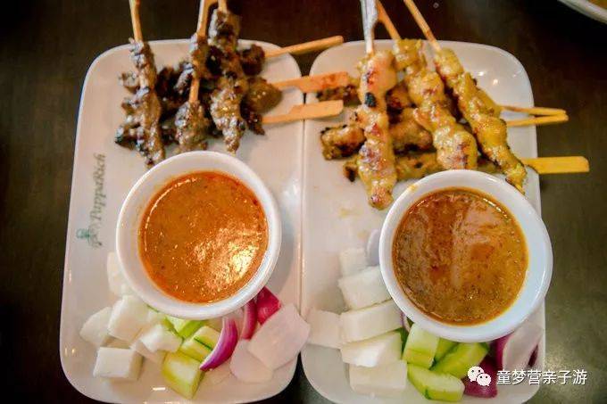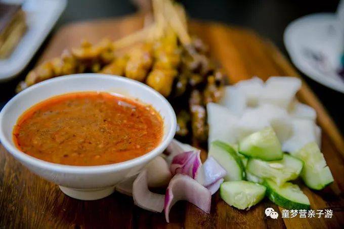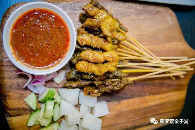 基于馬來人很多都是伊斯蘭教,所以一般會用雞肉和牛肉做食材。新鮮的牛羊肉用沙爹醬腌制好,放在炭火上細細烘烤。我喜歡沙爹醬汁,看上去是辣的,其實口感是有層次的甜味。