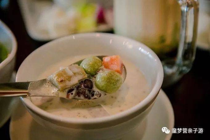 馬來摩摩喳喳:英文buborchacha,是帶有南洋風味的甜品。摩摩喳喳主要的材料也少不了西米,煮熟了的西米晶瑩剔透。然後在上面放上缤紛的熱帶水果:大樹菠蘿、木瓜、芒果等加入芋頭、紅豆及椰漿,吃起來香甜濃滑,一下激活了我的味蕾。