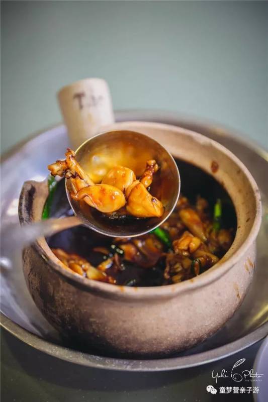 活田雞粥,意味著新鮮。只有新鮮的田雞才有著與生俱來的香味與韌性,也更富營養。粥是能夠讓人能夠體會安樂的食物。砂鍋內盛滿了色澤誘人的田雞,嫩到用筷子輕輕一夾就能骨肉分離,入口卻有彈性。另一鍋白粥鋪點姜絲和蔥末給人墊饑。