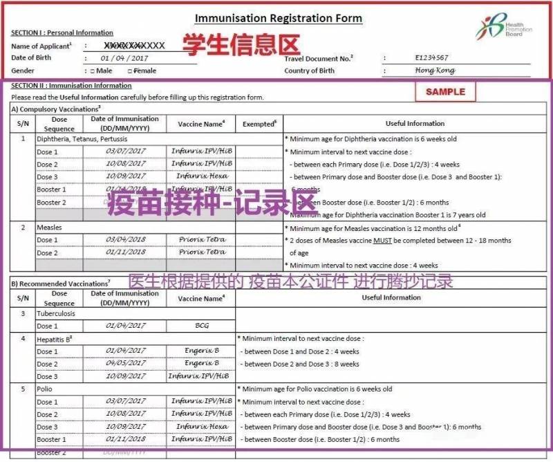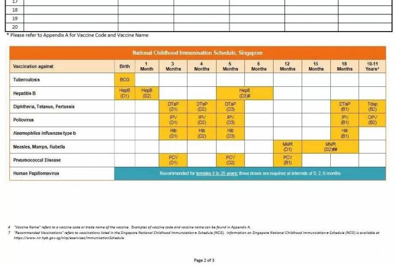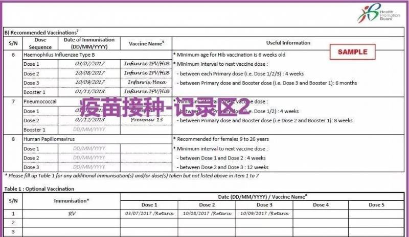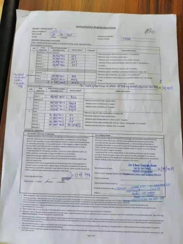 這裏敲黑板,重點說明的是:新加坡強制性疫苗爲四針白喉,三針麻疹,而中國要求是兩針麻疹,所以來新留學的孩子會要求補打。