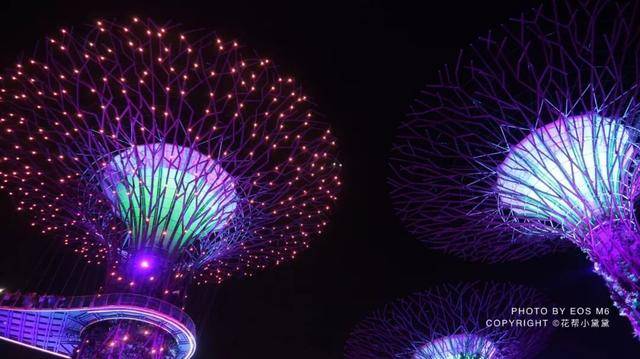 每天晚上有兩個時間段(7:45pm,8:45pm)超級樹都會按時上演一場音樂燈光秀,人們或坐或躺在地上,看著超級樹頂端樹杈燈光閃爍,伴著晚風徐徐,好像置身于潘多拉星球,是另一種美妙的享受。