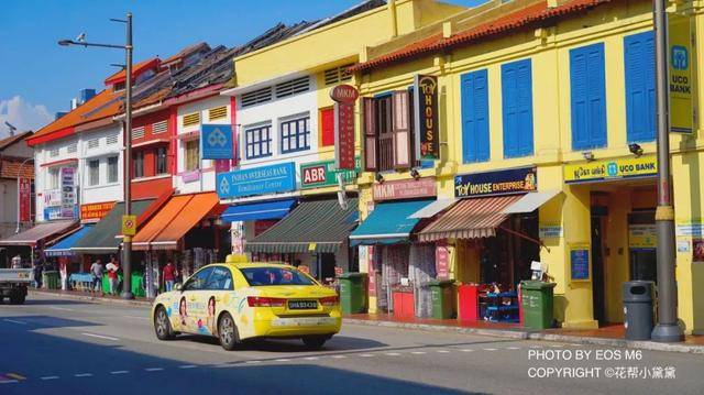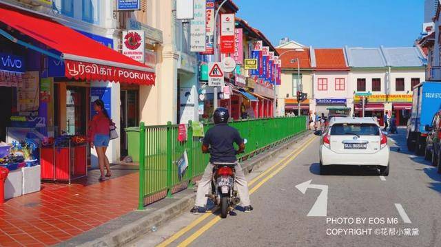 一進入小印度的地盤,一股濃烈的香料氣味伴著咖喱的氣味強行鑽進鼻孔,加上坡國午後晃眼的陽光和柏油馬路蒸騰的熱氣,熏的腦袋昏昏沉沉的,行走在小印度,眼睛、鼻子、嘴、五官發膚都強烈地感受到印度式沖擊,周圍濃郁色彩的建築恨不得要用盡人間所有色彩似的,舉著M6的手就沒放下來過,咔嚓咔嚓收集著眼底的色彩斑斓。