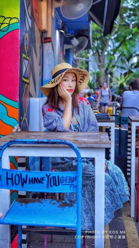 其實來甘榜格南的主要目的是逛哈芝巷,結果兜兜轉轉到達時,已經快要夕陽西下,走走停停20分鍾就可以看完的小巷子,卻是一個被熱情色彩包圍的世界,滿街的塗鴉+色彩,好像一條彩虹街,隨便一處都好拍。