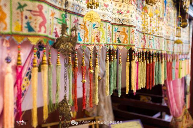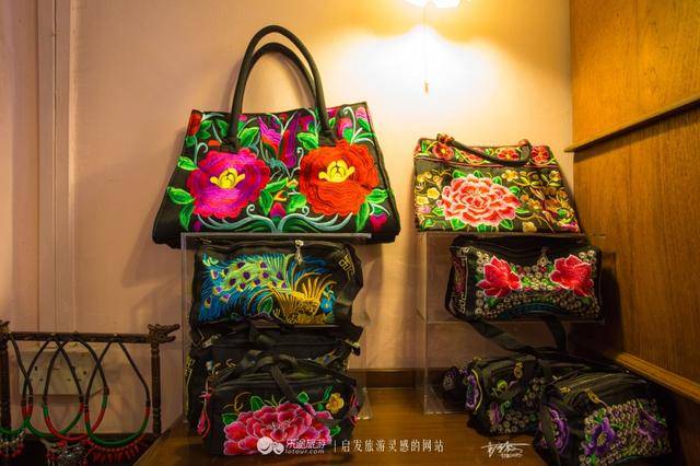 在金珠精品店,也就是金珠肉粽的隔壁,屋內的一桌一椅完全依照土生華人的飲食起居、生活習慣打造,典型的“屋中有店”的格局。裏邊的珠繡産品琳琅滿目,珠繡拖鞋、床帷、手袋、窗簾、巾帕等有序擺放,這些都是用成千上萬顆比米粒還小的細珠,穿以金絲銀線繡成于絲緞上,工藝細膩、精致、華美,每一件都堪稱藝術品。