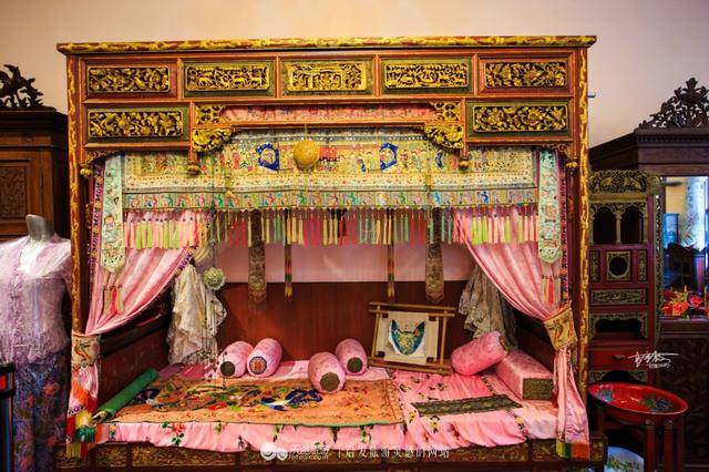 過去,土生華人的婚禮,從頭到尾要持續12天,結婚禮服、新房、嫁妝、敬茶儀式和長桌宴都必須細致准備,隆重、講究、儀式感可見一斑。婚禮上,娘惹鳳牡丹瓷器(從江西景德鎮定制進口)是必不可少的餐具。瓷器上的設計代表富貴吉祥,也象征女人的美、貞潔與婚姻美滿。