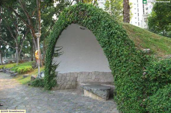 相別于一站外Bukit Batok的熱鬧,這裏顯得尤爲清淨,頗有一秒穿越回桂林的感覺。公園內大多爲石板路,小路旁邊有椅子和石頭切成的拱形涼亭供行人休息。