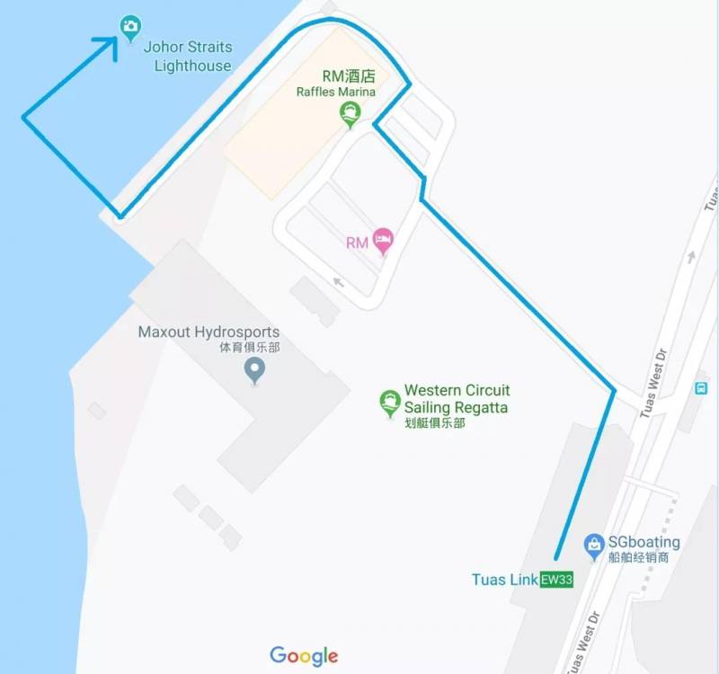 大海~夕陽~燈塔~從來沒有想像過在Tuas工業區居然存在這麽有情調的地方,這裏叫Raffles Marina,是一個小港灣,配有一個度假酒店,所以平時海岸沿線會停靠著小遊艇和帆船。