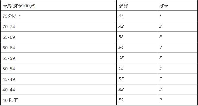 學生的最終成績是根據在當年全國總成績的百分比位置,A1是最好的成績,占前10%,A2次之,以此類推。