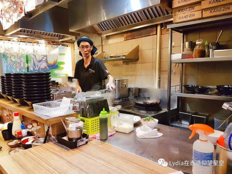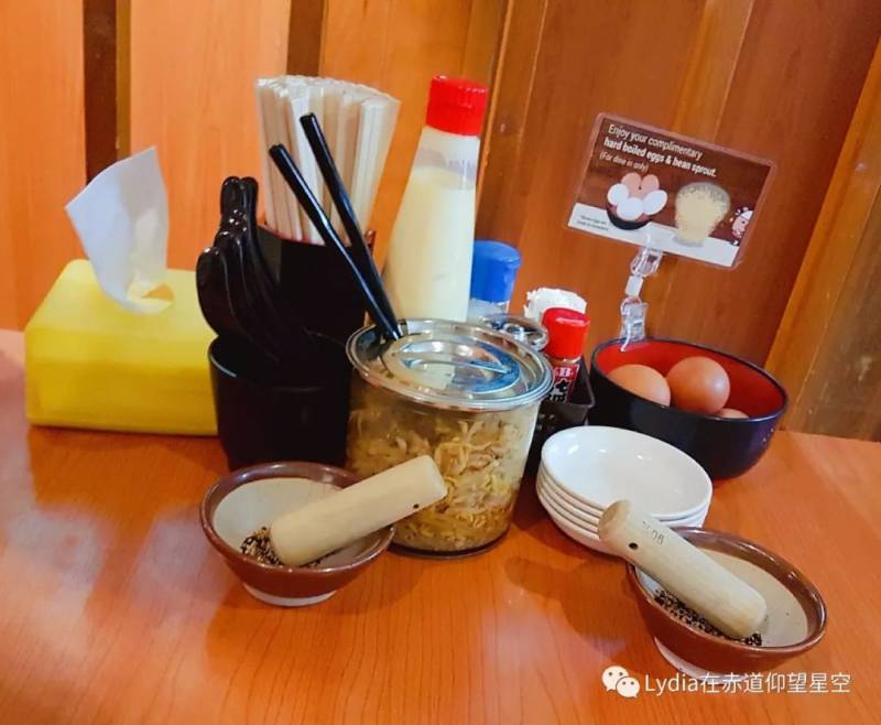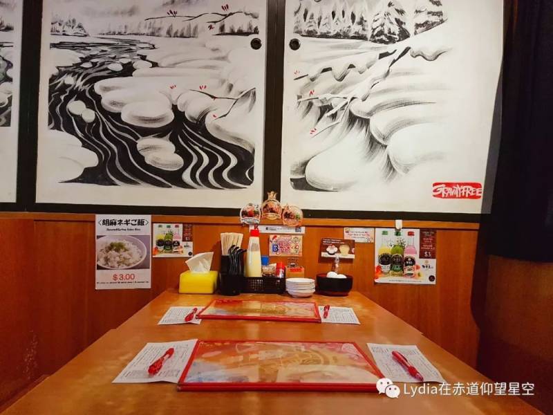 這裏還有一個小插曲就是我們剛到的時候拉面吧台區是有位置的,但是侍者要我們等一下,我們覺得有點奇怪。他說吧台區比較熱,一般他們盡量不安排客人去坐在哪裏除非客人自己特別要求,後面的位置正在打掃,整理好了就讓我們去後面坐。這說明很爲客戶著想,服務還是很到位的,加分!