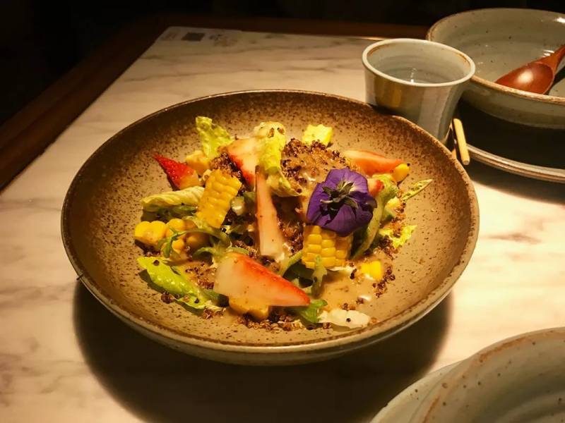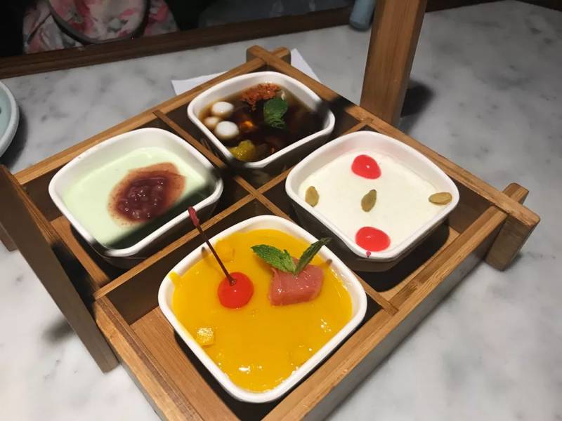 菜品價格整體不高,比較平價,量也是少少的精致感,然而…味道實在太讓人失望了!(大概因爲一開始對它抱了太高的期望)推薦菜“金屋藏嬌”吃一個就膩了,口水雞不夠入味,甜品拼盤大多是水沖的那種感覺,好看但一點也不好吃…