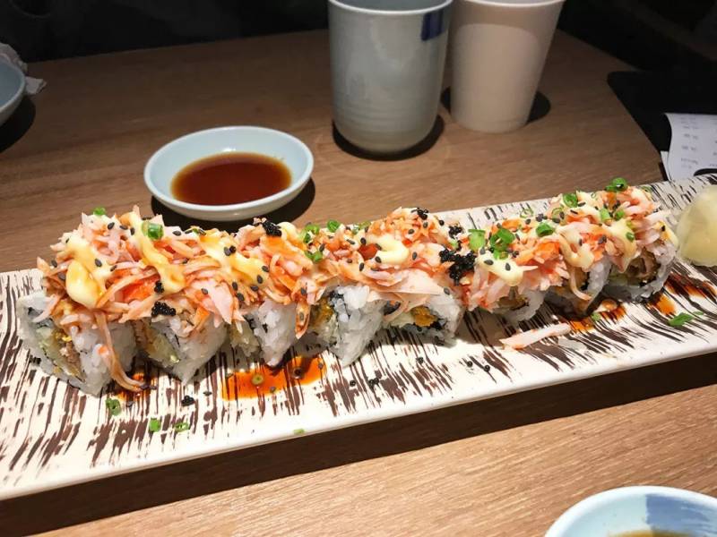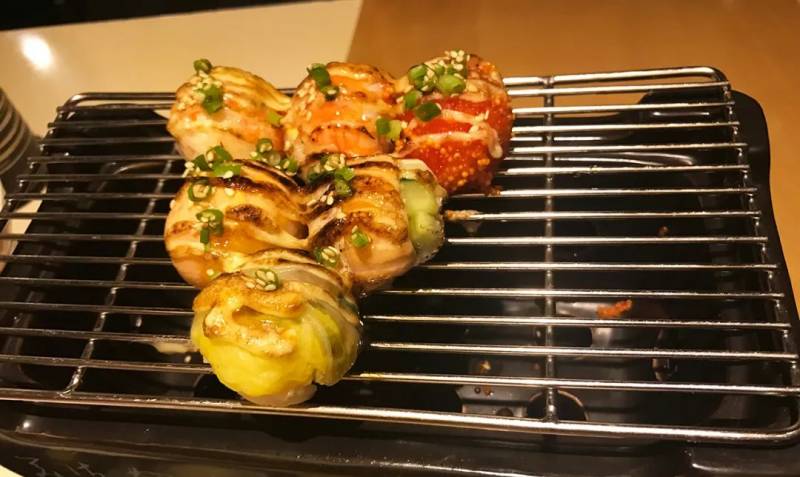 伊秀壽司今年還推出了一款新品叫“火球壽司”,就是把壽司做成球狀,然後服務員會拿來桌上現烤,論外形和創意值得一個好評,味道也還不錯~