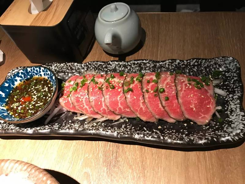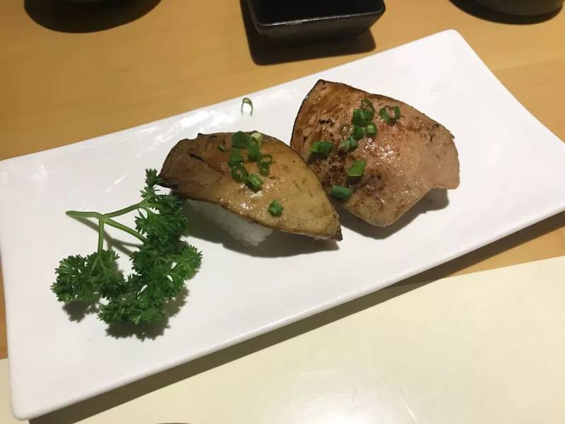 我們還嘗試了這家的生牛肉,處理的很幹淨,但是口感一般,沒啥驚豔的~不過左上圖的那個鮨谷卷我倒是強烈推薦!一般我對壽司卷都不大感冒,但是這個鮨谷卷做的口味超豐富,分量也很足,滿意滿意!