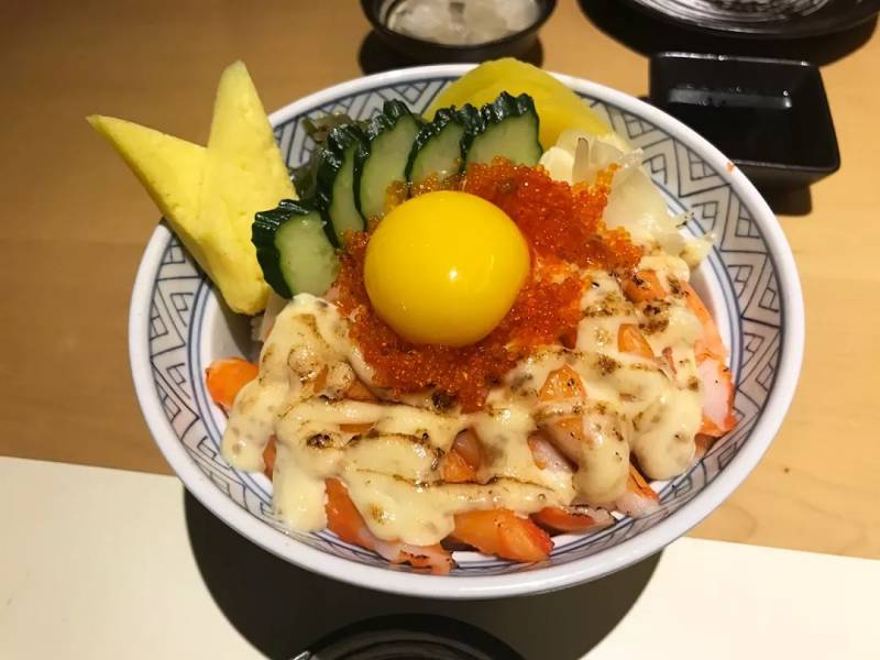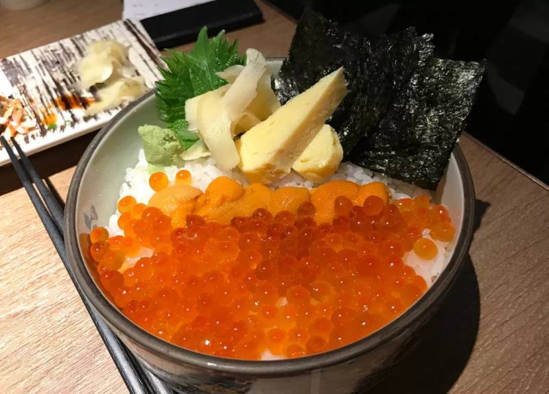 這家的海膽三文魚籽飯,光是看照片就讓人覺得很滿足有木有!魚籽大顆量又多,海膽也很新鮮,拌著飯一起吃很爽~不過要是爲了吃海膽,建議在這家單點,單點的海膽比飯裏的品質高很多!