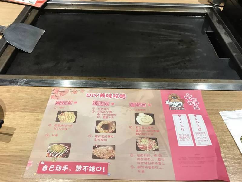 這是一家可以專門吃日本大阪燒廣島燒那些各種燒的店,當然也有一些其他的鐵板料理,特殊節日還會推出放題活動(暢食不限量)。